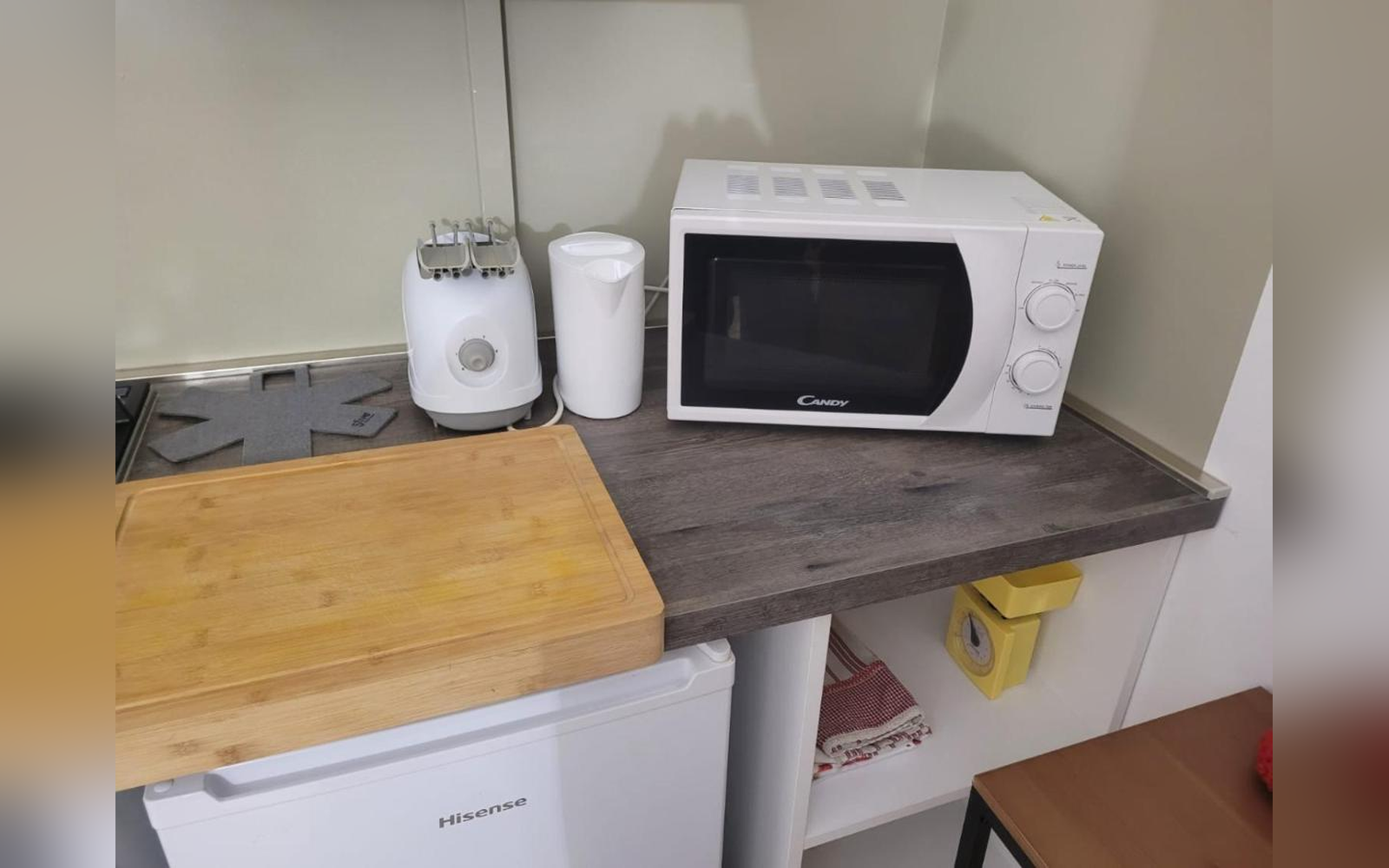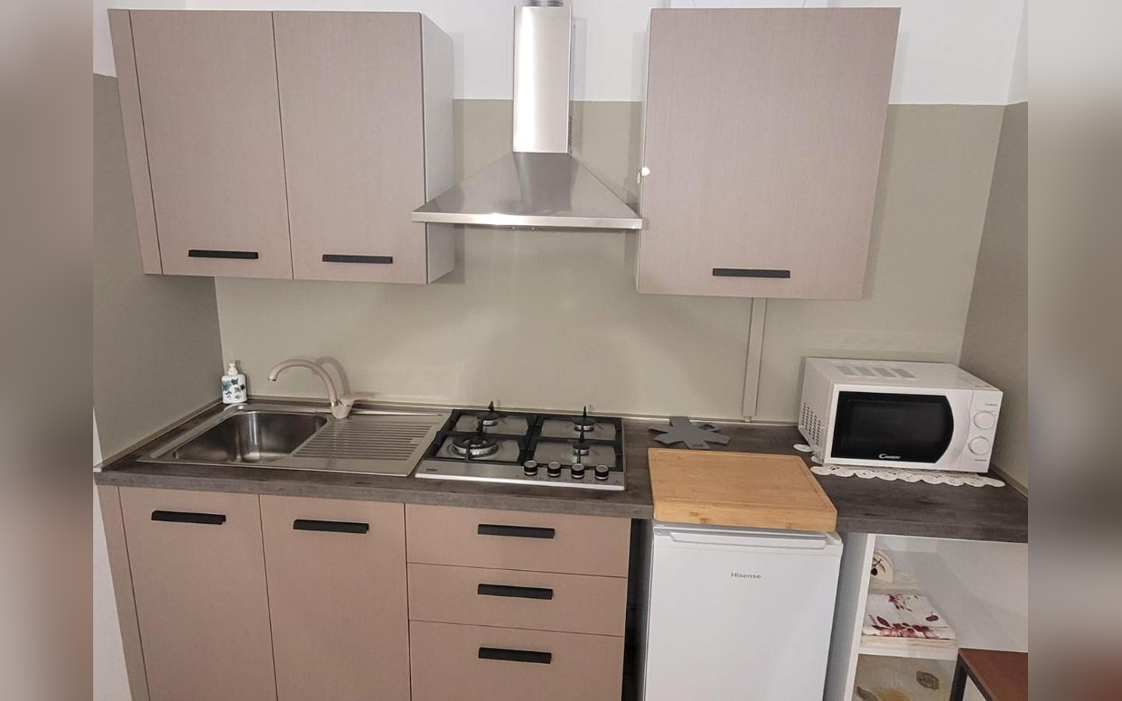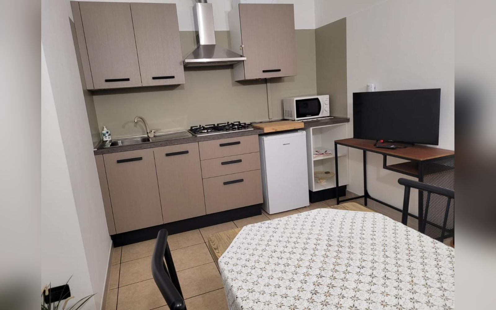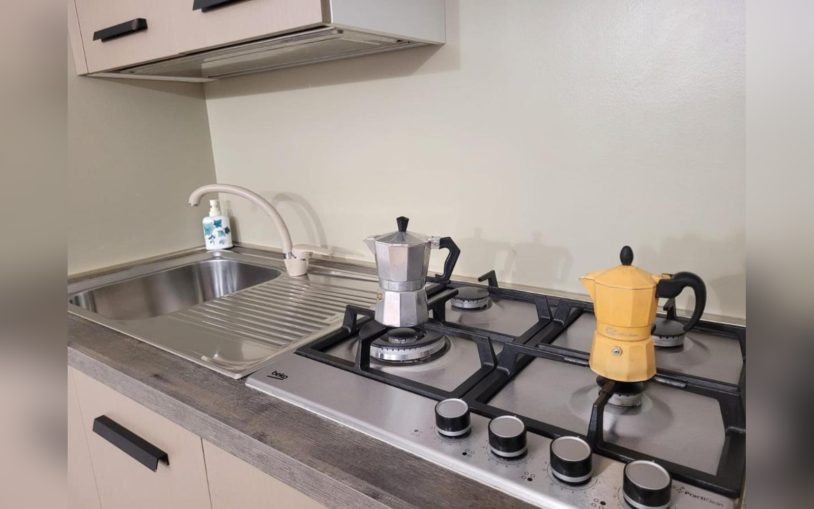 Piano cottura, utensili e spazio per cucinare in autonomia.