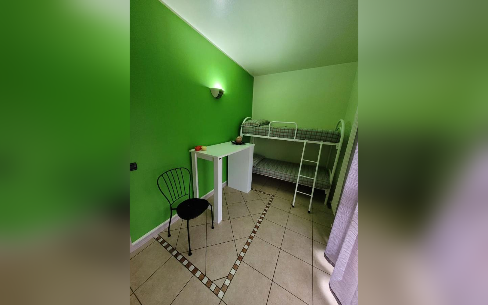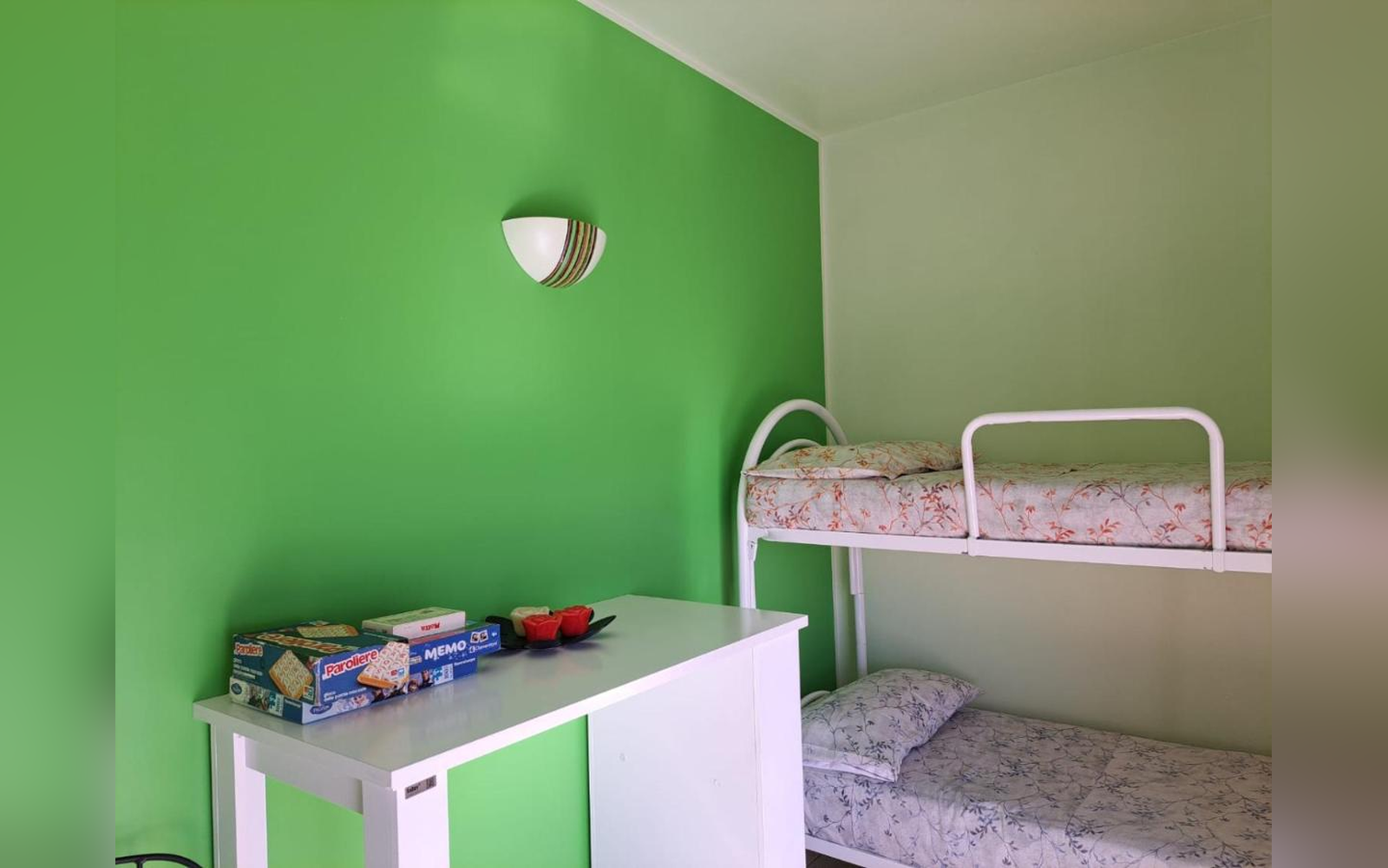 Accogliente appartamento composto da due camere da letto, soggiorno, cucina completamente attrezzata e bagno. La prima camera dispone di un letto matrimoniale e un letto singolo, mentre la seconda camera è dotata di un letto a castello, perfetta per famiglie con bambini o gruppi di amici. Gli ambienti sono pratici e funzionali, ideali per un soggiorno rilassante a pochi chilometri da Venezia.